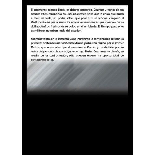 El momento temido llegó: los delares atacaron. Cazram y varios de sus amigos están atrapados en una gigantesca nave que lo único que busca es huir de todo, sin poder saber qué pasó tras el ataque. ¿Seguirá el RedEspacio en pie o serán los únicos supervivientes que quedan de su civilización? La frustración se palpa en el ambiente. El tiempo pasa y los ex militares no saben nada del exterior.